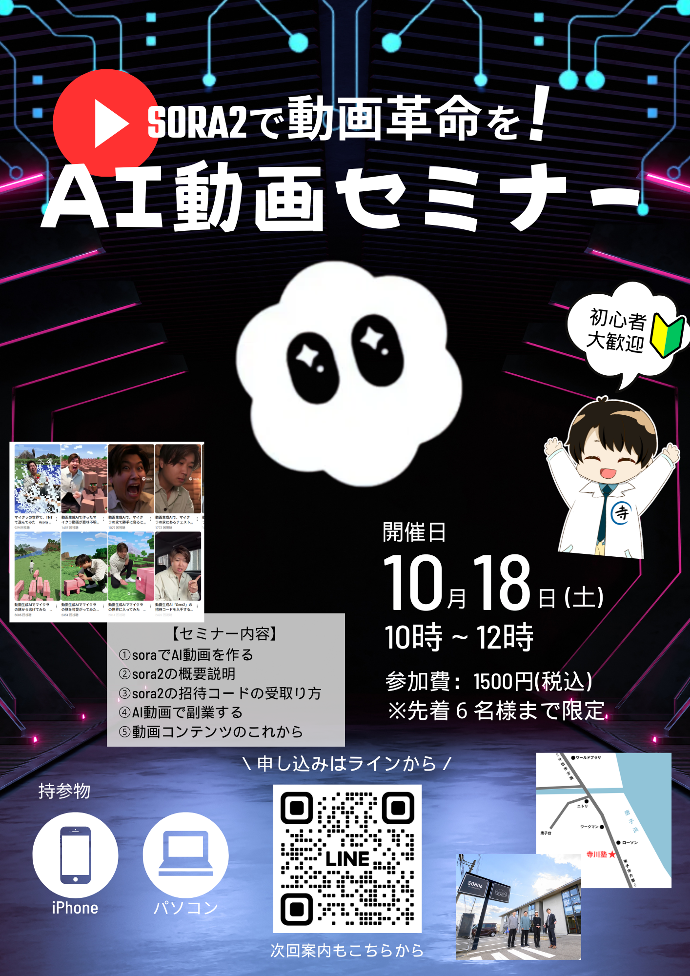 - 【告知】SORA2でつくるAI動画セミナー開催!こんにちは、寺川塾です。 話題沸騰中の「SORA2」を使えば、もう難しい編集スキルは不要! テキストからわずか数クリック …
